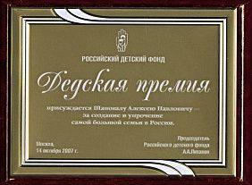 «Дедская премия» учреждена Российским детским фондом, для родоначальников многодетных, больших семей России.