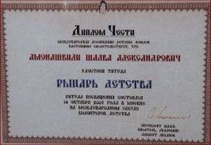 Почетное звание «Рыцарь детства» учреждено Российским детским фондом для граждан мира, которые совершили подвиг во имя спасения жизни детей или внесли особый вклад в защиту сиротского детства.