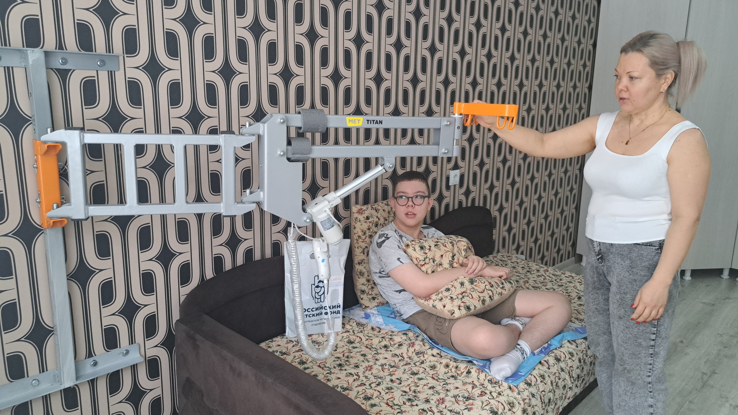 Уход за взрослеющим сыном с каждым годом дается родителям все сложнее. Поскольку папа в семье – главный добытчик, то много времени проводит на работе – одном из промышленных предприятий города. Значительную часть времени с сыном проводит мама, которой не под силу поднять уже взрослого сына. Поэтому такое устройство, как подъемник для ванны, семье жизненно необходимо. Родители приспособили устройство для его использования не только в санузле, но и в детской комнате. Татьяна Кутина тепло поблагодарила фонд и его жертвователей за помощь, которая придала им и душевных сил. Самостоятельно приобрести оборудование стоимостью свыше 100 тысяч рублей семье не по карману.
