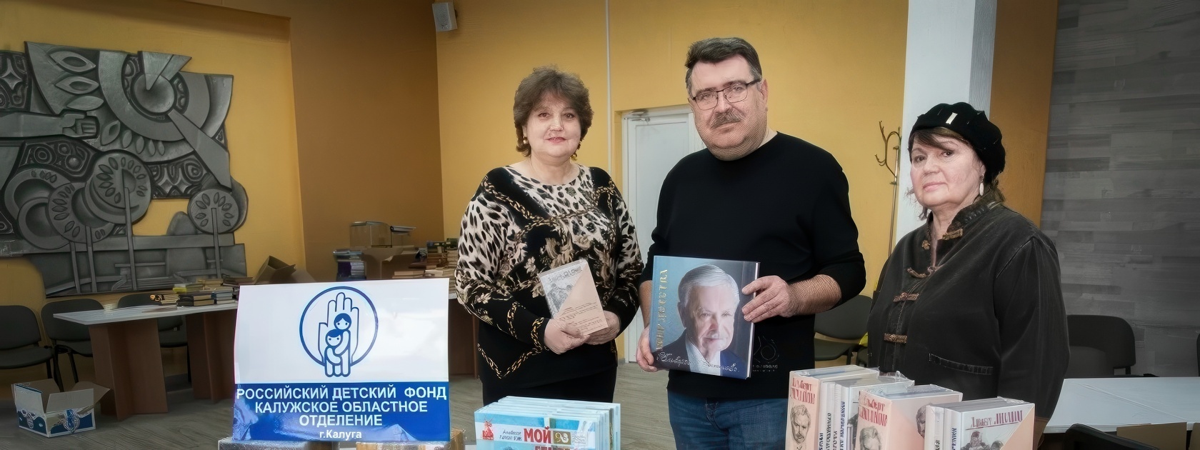 Акция по сбору книг, инициатором которой выступило Калужское региональное отделение Союза журналистов России, завершена. Однако 7 апреля в редакцию «Калужских губернских ведомостей» поступила большая партия новых книг известного детского писателя Альберта Лиханова. Их привезли председатель Калужского отделения Российского детского фонда Лариса Русских и зампредседателя Лариса Савченко.